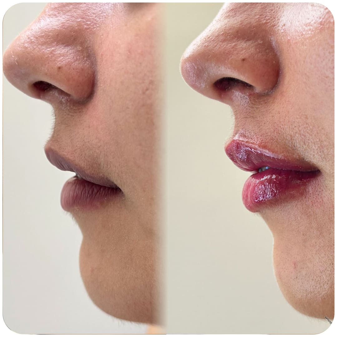 Aumento sutil e personalizado para lábios mais volumosos sem exageros.